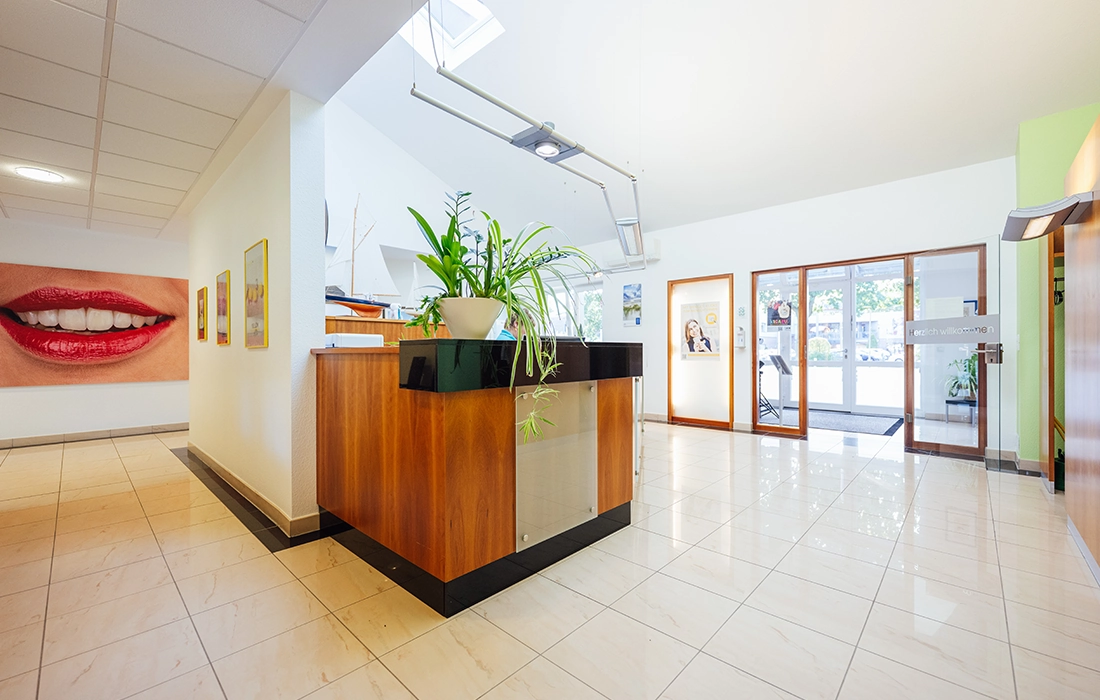 Zahnärztliche Erfahrung, sympathische Mitarbeiter*innen, moderne Ausstattung und ein Umfeld, das Ruhe verspricht, stehen Ihnen zur Verfügung.