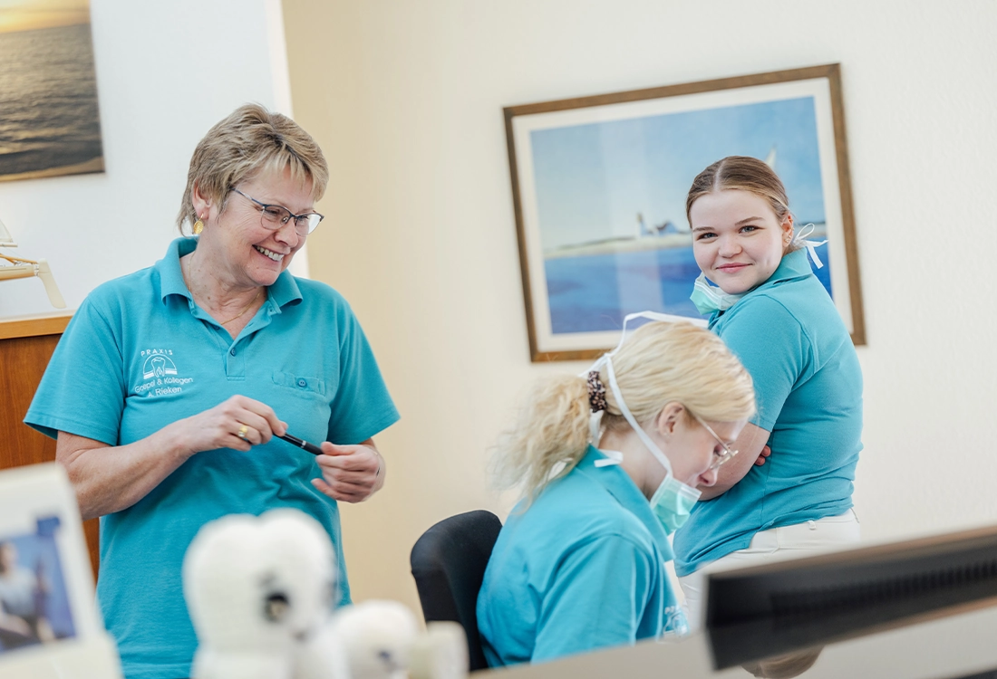 Unsere Behandlung ist nur möglich durch die ruhige und kompetente Zusammenarbeit jedes Einzelnen. Wir sind stolz in diesem tollen Team arbeiten zu dürfen!